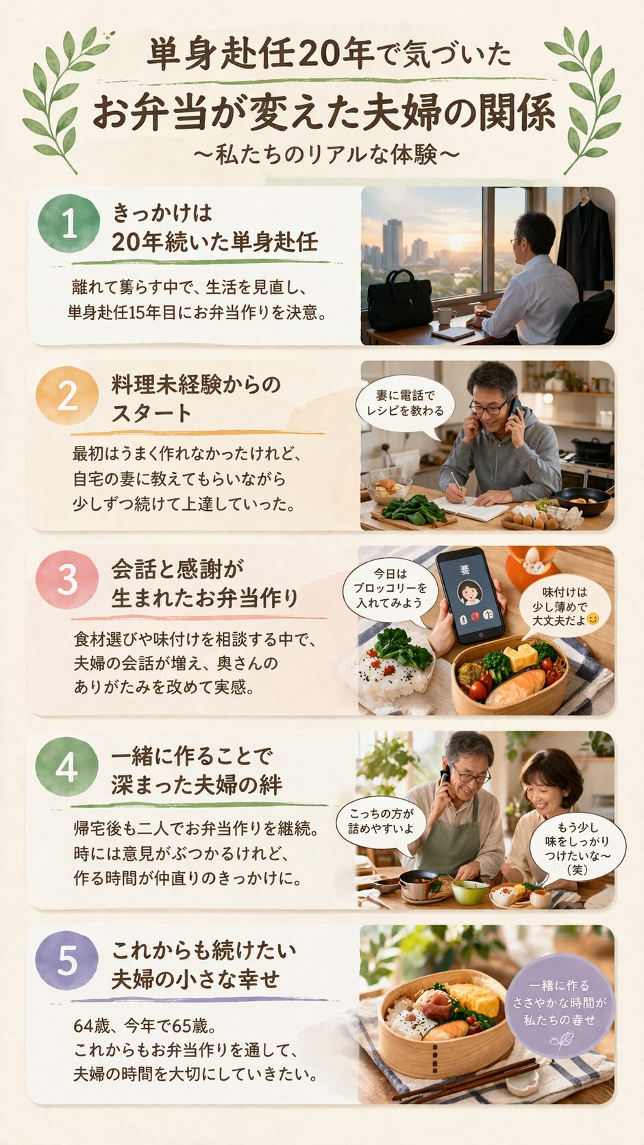 この記事では、単身赴任20年の経験から感じた夫婦の距離と、お弁当作りがどのように関係を変えていったのかを、実体験ベースでお伝えします。