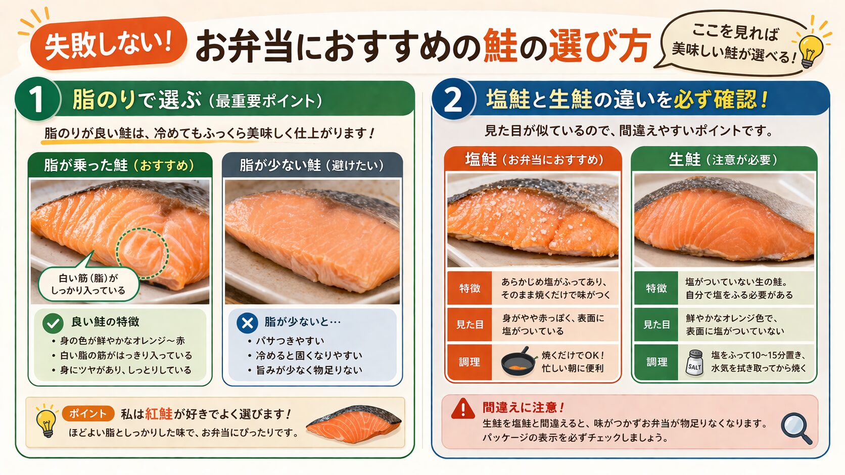 無理に高い鮭を選ばなくても、選び方を変えるだけでお弁当の満足度は大きく変わります。